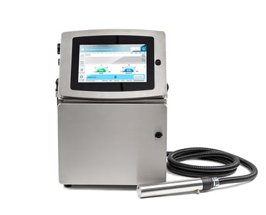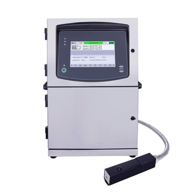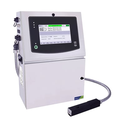Industrial CIJ printer with split design, auto cleaning, and high-speed coding. Suitable for