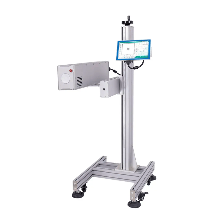 60W CO2 laser marking machine footprint is easy to move and can be easily integrated into all kinds of existing production lines It prints data matrix , date codes, barcodes, and other essential information on the packaging.