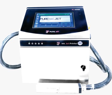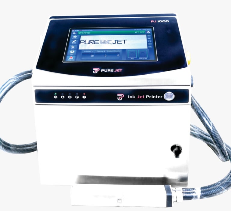 The PJ‑1000 CIJ Printer is an industrial continuous inkjet coding system designed for high-speed product marking on packaging lines. It delivers high-resolution printing up to 360 dpi with speeds reaching 150 m/min, allowing clear printing of text, barcodes, logos, dates, and batch codes.