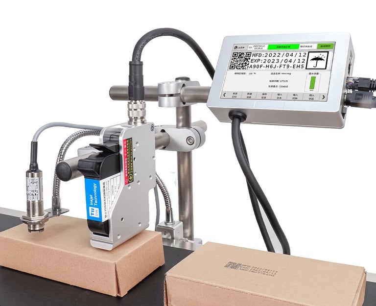 Printing material: Cartons, plastics, metals, plates, pipes, stones, wires & cables, electronic components, auto parts, industrial chemical packaging, pharmaceutical and food, gift packaging