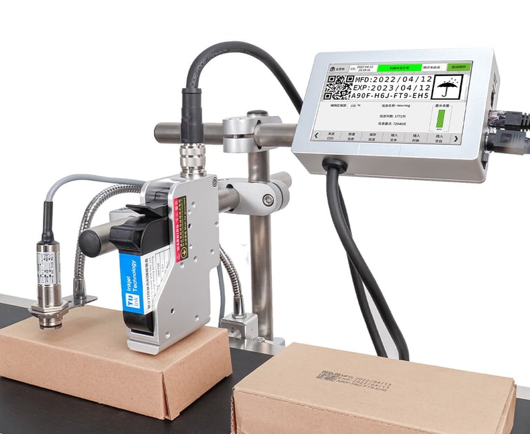 Printing material: Cartons, plastics, metals, plates, pipes, stones, wires & cables, electronic components, auto parts, industrial chemical packaging, pharmaceutical and food, gift packaging