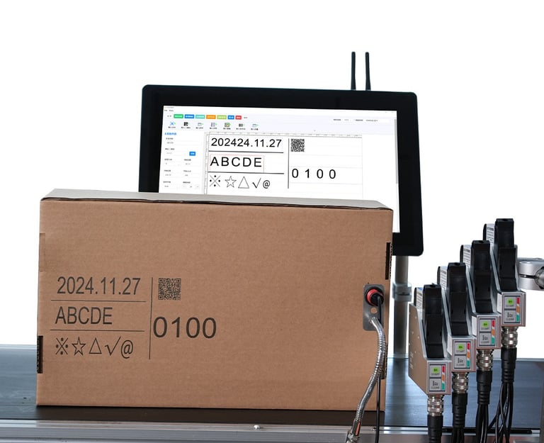 Printing material: Cartons, plastics, metals, plates, pipes, stones, wires & cables, electronic components, auto parts, industrial chemical packaging, pharmaceutical and food, gift packaging